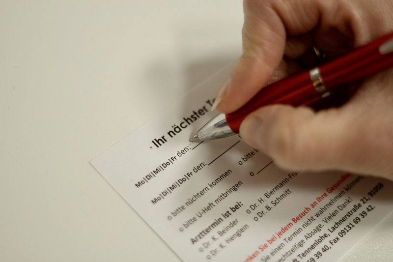 die dort mit einem Kugelschreiber einen Termin einträgt