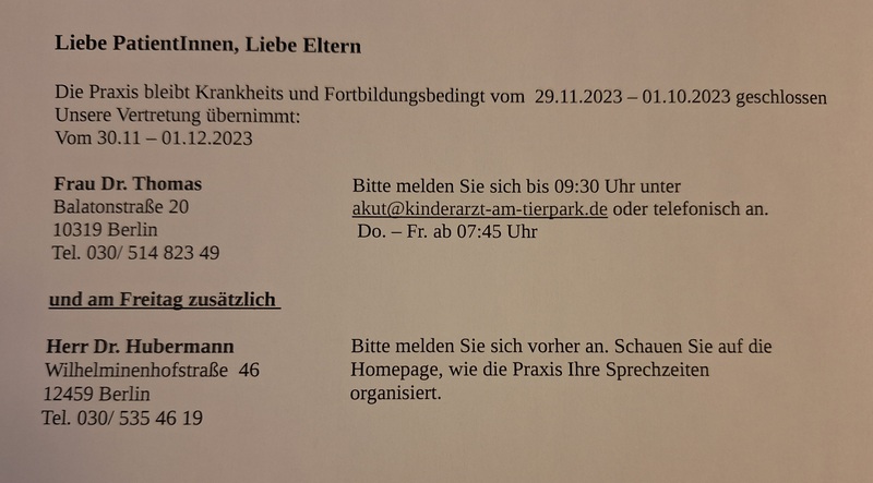 Siehe weiter oben auf dieser Seite: Akut- u. Terminsprechstunden!