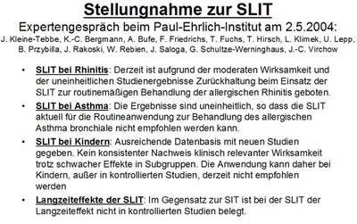 | Hyposensibilisierung spezifische Immuntherapie (Injektionen gegen Allergie), s.a. SIT (die orale/sublinguale Hyposensibilisierung ist in der Pädiatrie noch nicht Standardtherapie) |