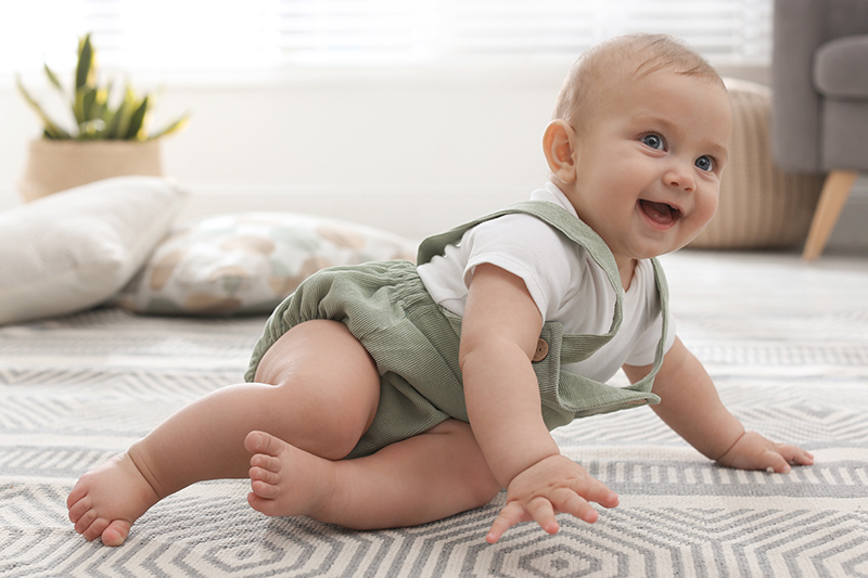 Zwischen dem 7. und 8. Lebensmonat beginnen viele Babys zu krabbeln.