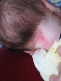Dabei handelt es sich um ein so genanntes Feuermal (Naevus flammeus), das im Volksmund auch „Storchenbiss" genannt wird. Es handelt sich hierbei um eine gutartige Hautveränderung, die meist in den ersten 3 Lebensjahren verschwindet.